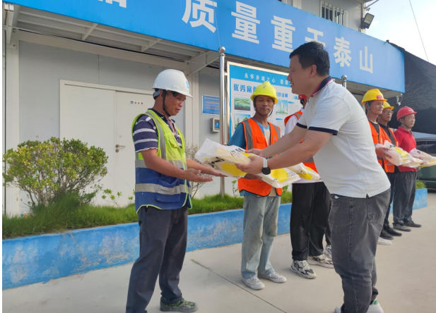隨后,大家前往項(xiàng)目一線開展中秋慰問,為留守項(xiàng)目一線人員提前送上中秋慰問物資,并致以真摯的節(jié)日問候與祝福,進(jìn)一步增強(qiáng)了在建工程留守項(xiàng)目一線人員的幸福感和歸屬感。