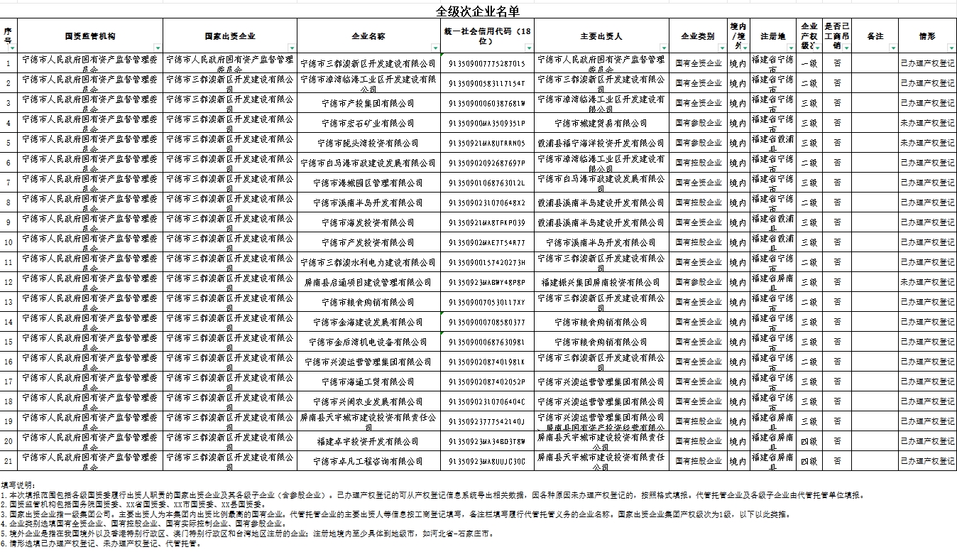 市三都澳新區(qū)公司全級(jí)次企業(yè)名單