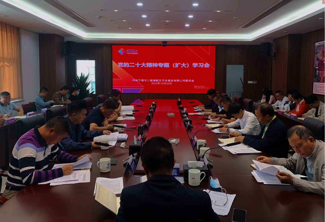 10月26日,市三都澳新區(qū)公司召開黨委專題(擴(kuò)大)會(huì)議,傳達(dá)學(xué)習(xí)貫徹黨的二十大精神。公司黨委書記、董事長(zhǎng)徐慶蕊主持會(huì)議并傳達(dá)黨的二十大、黨的二十屆一中全會(huì)精神,就深入學(xué)習(xí)宣傳貫徹工作進(jìn)行安排部署。公司黨委副書記、總經(jīng)理袁燦申傳達(dá)省委常委會(huì)、市委常委會(huì)、市政府黨組、市國(guó)資委黨委傳達(dá)學(xué)習(xí)貫徹黨的二十大會(huì)議精神。公司領(lǐng)導(dǎo)班子成員,各部室負(fù)責(zé)人,各下屬黨組織負(fù)責(zé)同志,機(jī)關(guān)支部全體黨員、發(fā)展對(duì)象、入黨積極分子參加會(huì)議。